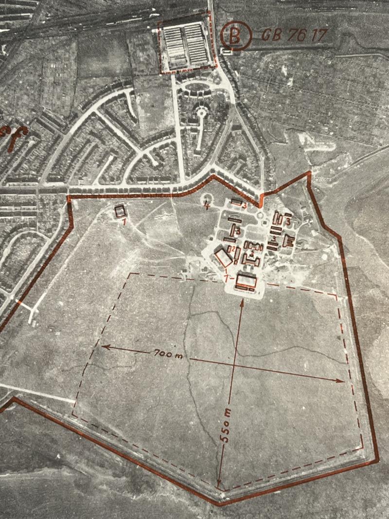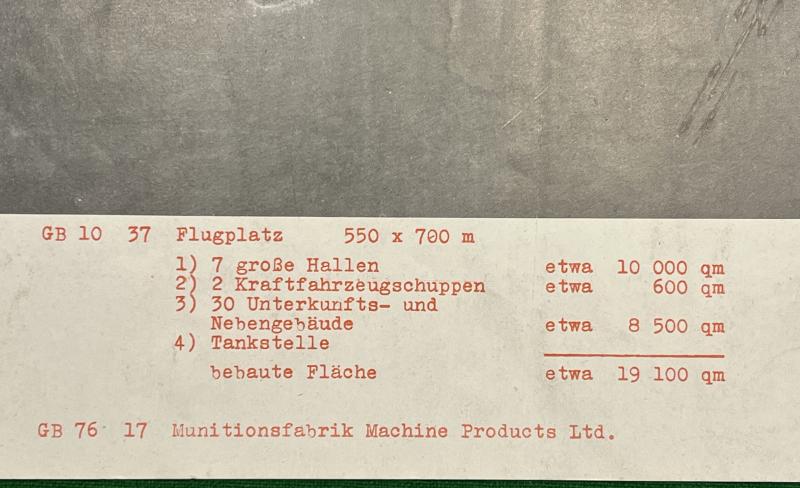 Original Luftwaffe target information aerial photograph of ' Cardiff Flugplatz ' - Cardiff airfield. Targets within the airfield are also outlined and identified including hangars and fuel tanks. Good, clean condition, has been folded with a provenance from a member of the RAF.
