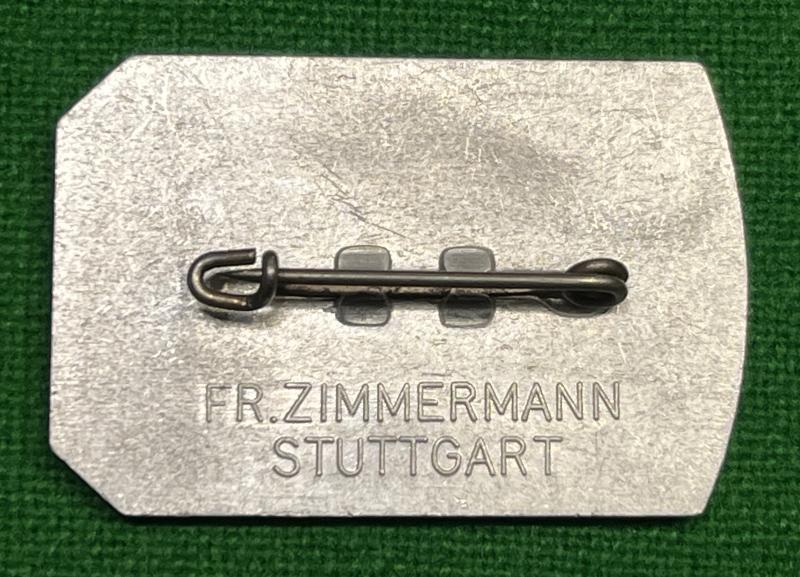 Die struck, alloy badge produced for the district-day for Stuttgart (25-27 June, 1937) . Vertical pin to reverse, manufactuer marked Fr. Zimmerman, Stuttgart. Good, clean condition.
