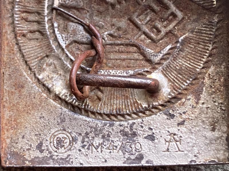An unequivocal original WW2 Hitler Youth belt buckle. Has suffered some loss of the nickel plating, but other than that no damage. Steel pressed construction with steel hook and prongs. Profusely marked to the rear. RZM M4/39 and the Assmann ‘A’.