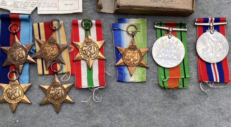 1939/45 star, Africa star, Italy star, Atlantic star, Defence medal 1939/45 War medal. + 2 spare stars.