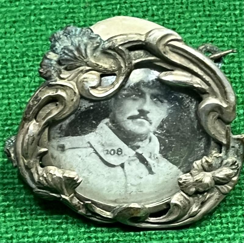 WW1 French identity bracelet to Fernand Babinot with a pin mounted brooch bearing a portrait of a poilu assumed to be Babinot as the grouping was acquired together. Good, used condition.