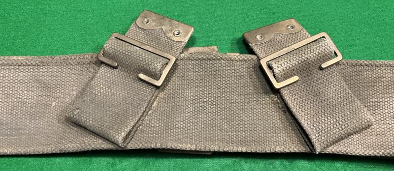 Good example of a British '08 Patt. webbing belt unit marked to the 4th Batt. Kings Shropshire Light Infantry. Faint manufacture and date marks 1916/18 ? Old blancoed finish which has darkened. Good, used condition.