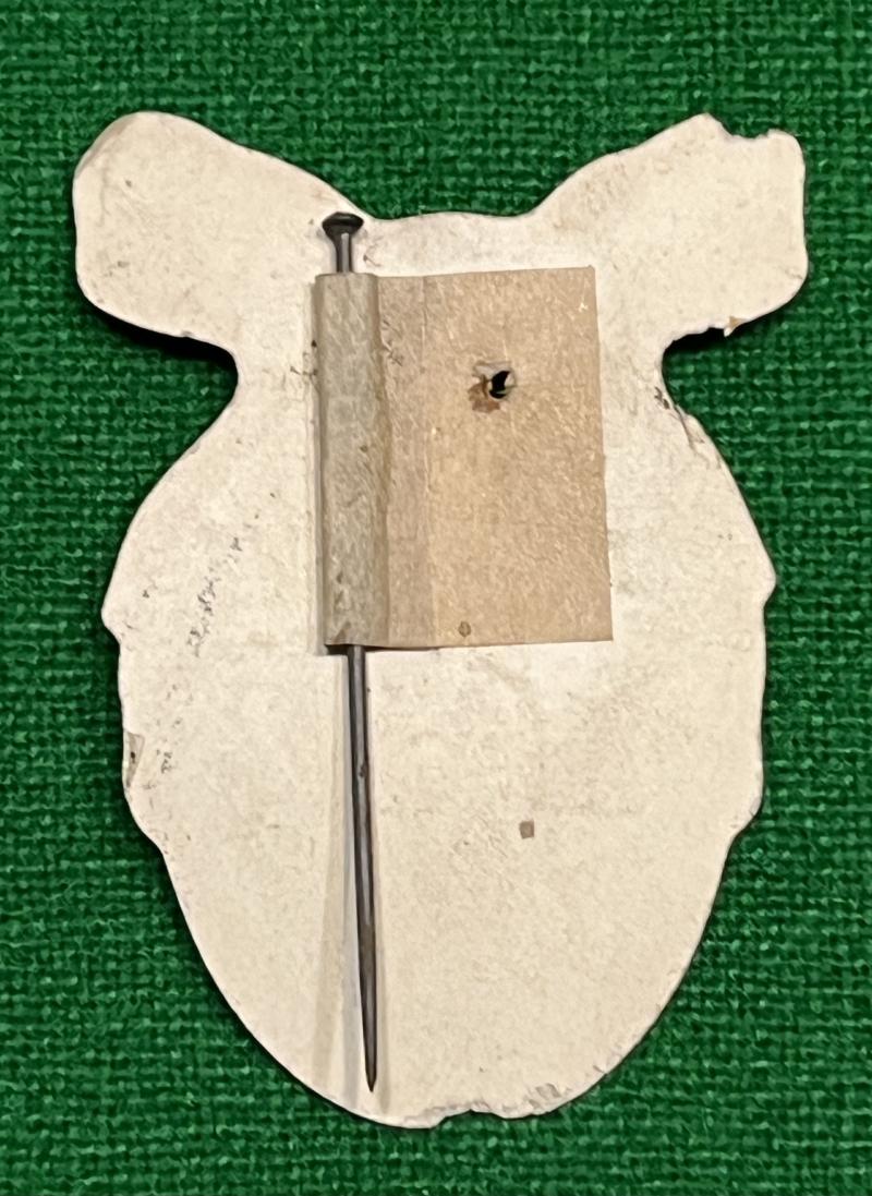An uncommon WWI period fund raising paper badge in the form of a large chicken's egg tied in a patriotic red, white and blue bow and portraying a large Red Cross, ' Patron H.M. Queen Alexandra ' title above and ' National Egg Collection 154, Fleet St, London ' below. Good, used condition, retaining original single pin fitting, with some minor nibbles to edge.