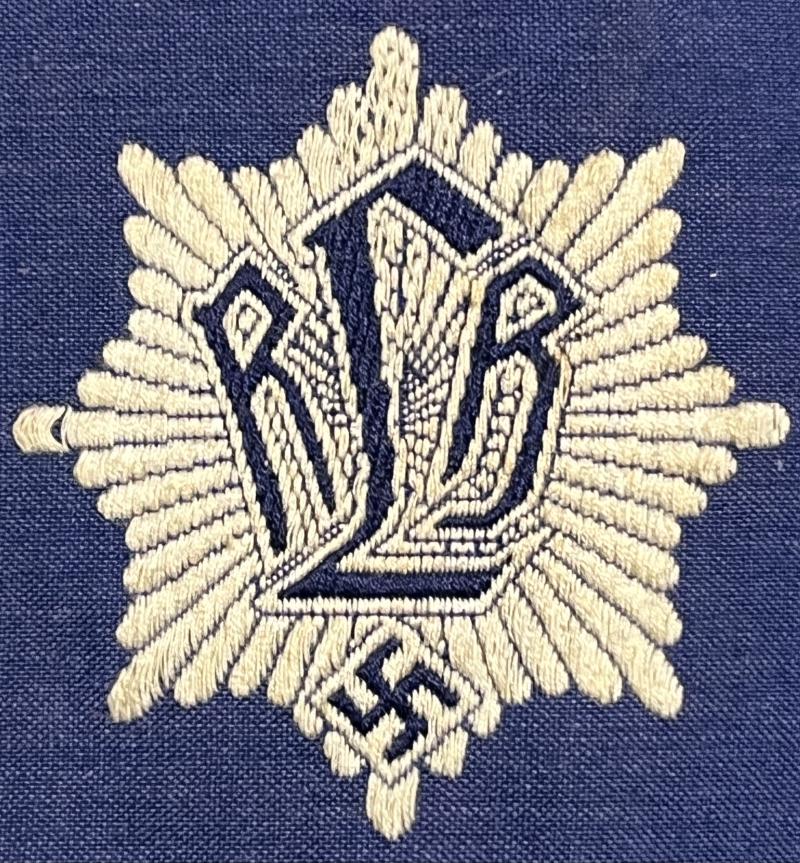 A first pattern RLB ( Reichs Luftschutz Bund National Air Raid Protection League) Armband. Machine woven on cotton marked ' Ges. Gesch ' to reverse. Good, clean condition, pin holes to four corners.