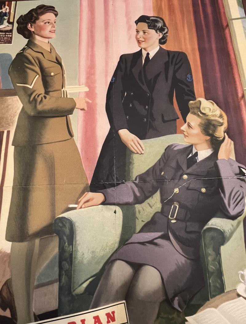 Wartime poster entitled ' They are Planning Their Future Are You ? ' featuring women of the A.T.S., WRENS, and WRAF. 75cms x 50cms approx. printed by H.M.S.O. by Thos.Forman & Sons, Nottingham. Classic period rendering in good, used condition with some tears and omissions, has been folded.