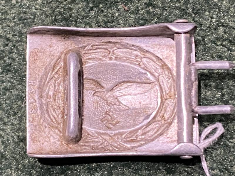 A very nice used example of an aluminium belt buckle worn by Luftwaffe other ranks and NCO’s. One piece stamped buckle with steel claw adjuster. One und has makers mark cast into the metal of R.S &S. Richard Sieper & Sohne, Ludenscheid