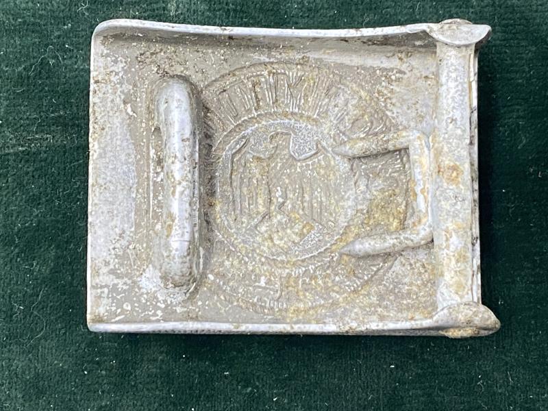 THIRD REICH ALLOY WHERMACHT BELT BUCKLE AND LEATHER KEEPER.