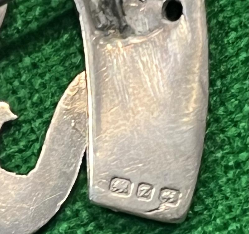 An 1899 hallmarked silver Royal Fusiliers sweetheart brooch.large hollow, two piece silver example, the reverse impressed with Birmingham silver hallmarks for 1899 and maker's details "F.N" (F. Narborough Birmingham). Good, clean condition.