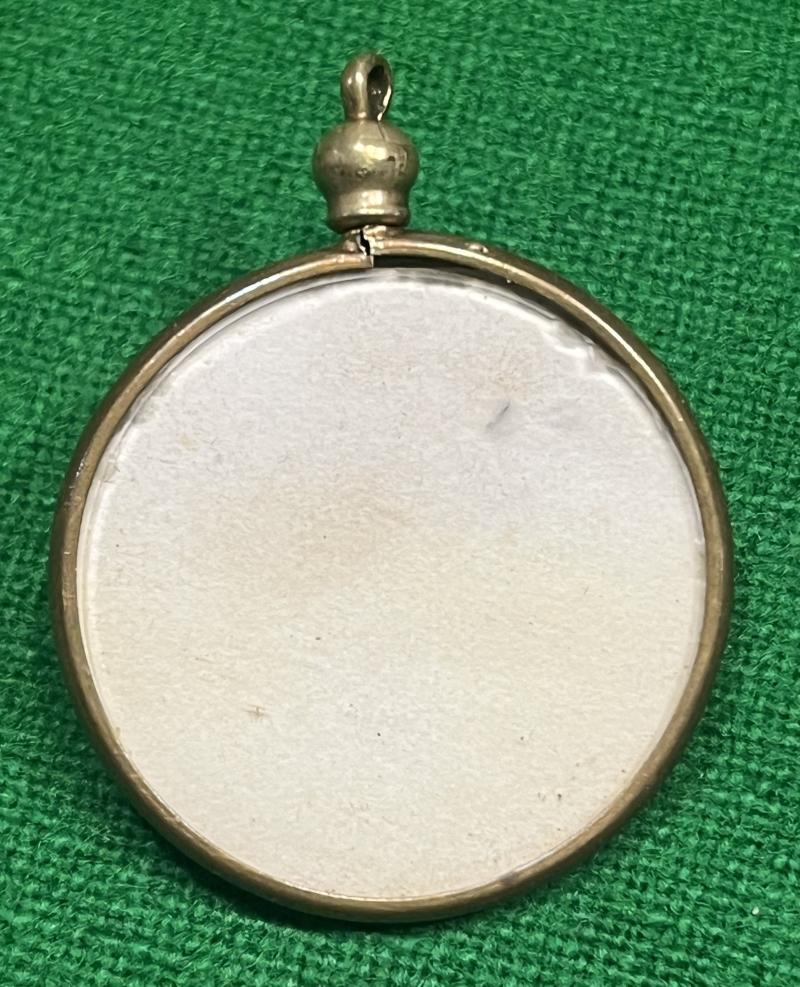 Gilt framed, double sided locket containing a photo portrait of a 2nd Lieutenant in his cuff rank tunic. Good, used condition.
