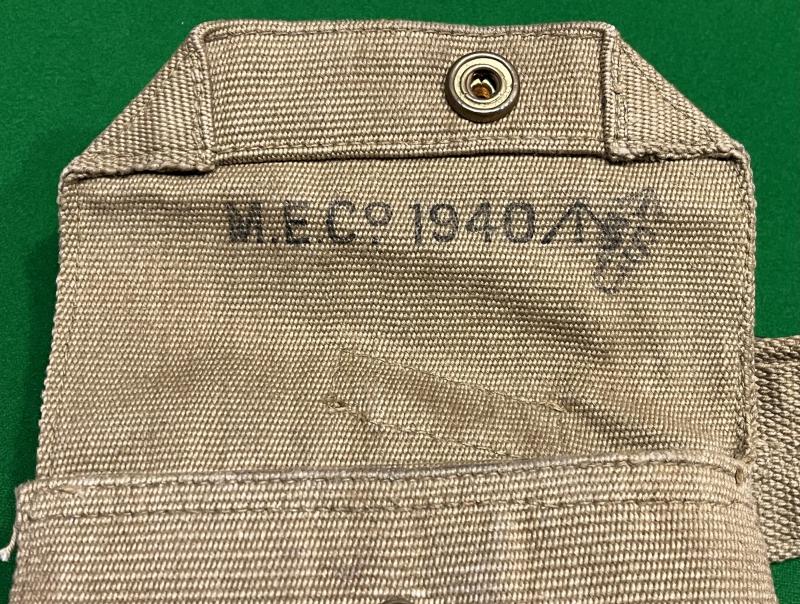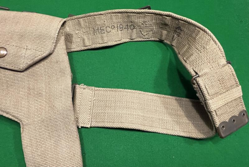 1940 dated 1919 Patt. belt by the Mills Equipment Company accompanied with the large '37 Patt holster that would accommodate the Colt 1911 .45 Auto. Holster similarly 1940 dated and manufacturer marked indicating manufacture by the Mills Equipment Co. Both items in clean condition with a slight nibble to the reverse of the belt.