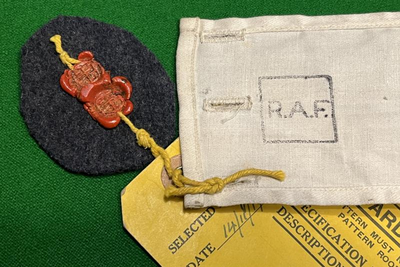 1941 Sealed Pattern issued by A.I.D.Kidbrooke for ' Armlets, Baggage, Parties.' Applied felt on linen armband with button closures with an RAF stamp to reverse.