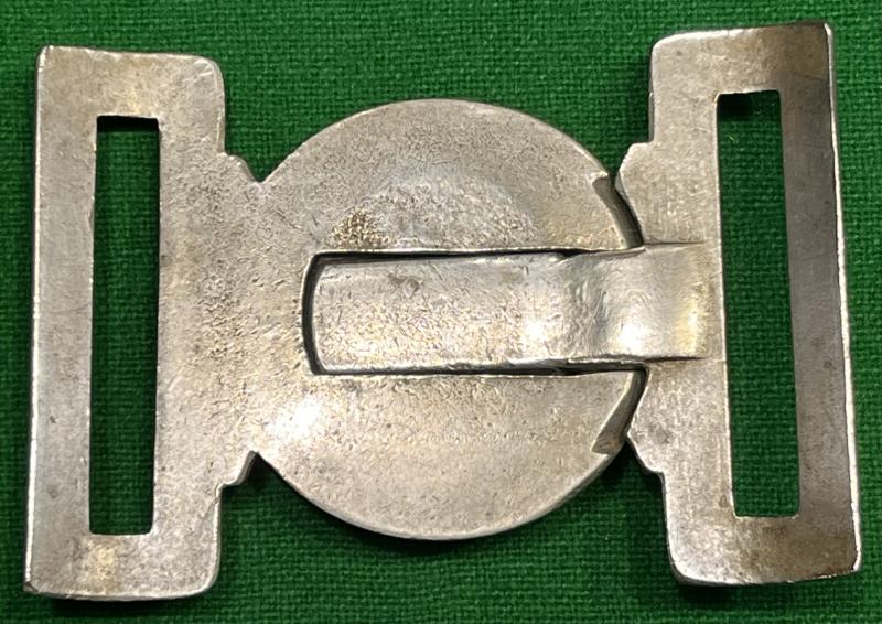 White metal, two-piece buckle worn on the Slade Wallace belt by members of Volunteer units. Victorian crown surmounted by a lion to the centre with the motto ' Dieu et Mon Droit '. Excellent, clean condition.