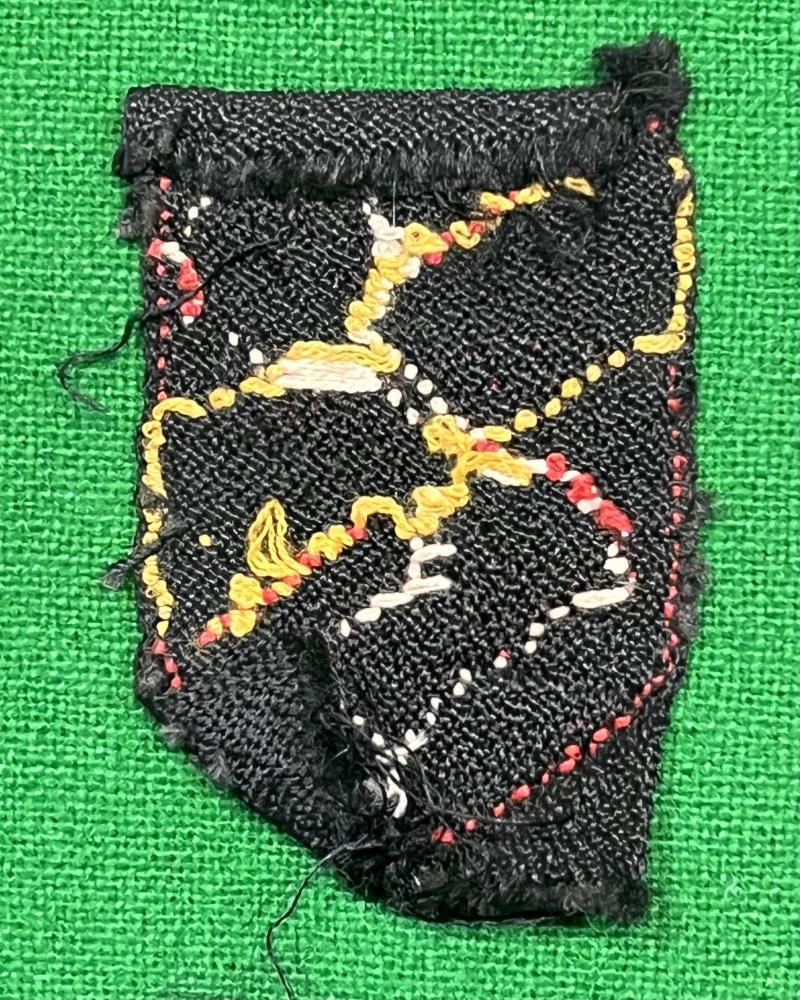 A good, worn example of a WW2 34th Armoured Brigade formation sign in the distinctive Brabant weave style of construction. Folded to shape and removed from a uniform.