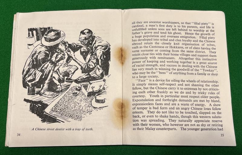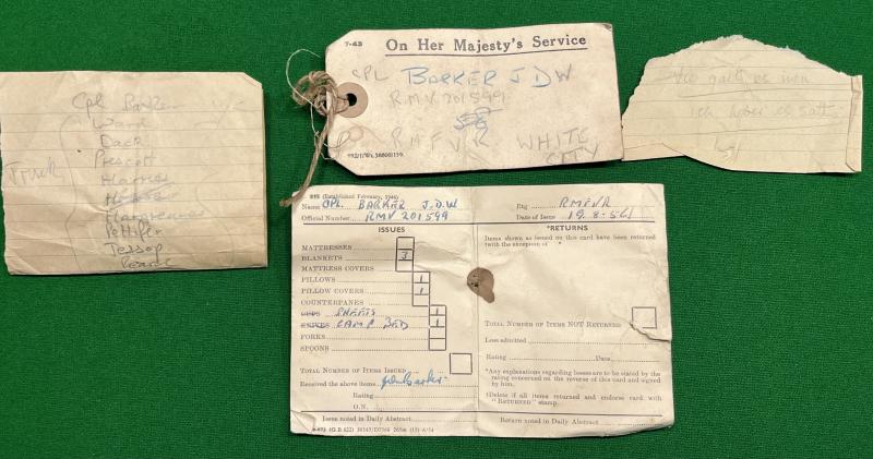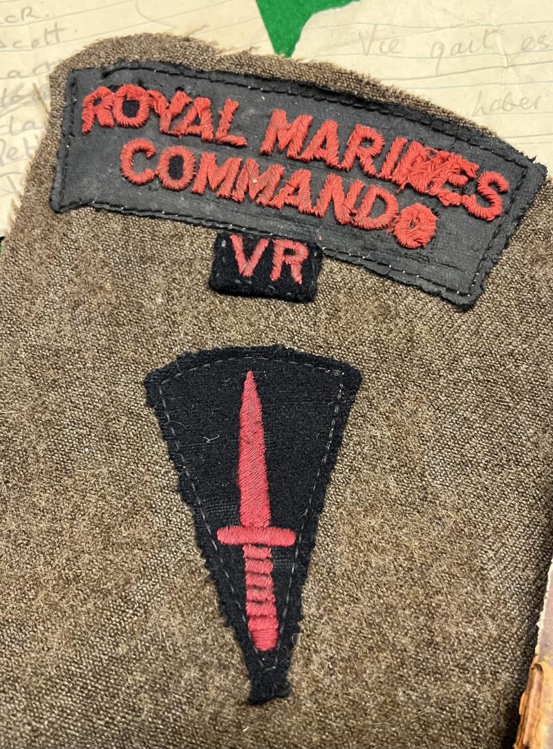 Insignia and paperwork grouping to a veteran of the Royal Marine Volunteer Reserve. Centring around a ' sleeve ' of insignia with additional rank stripe and King's crown cap badge. Various notes and forms indicating the group belonged to RMV.201599 Cpl.J.D.W.Barker and includes a booklet advising of the history, traditions and lifestyles prevalent in Malaya.