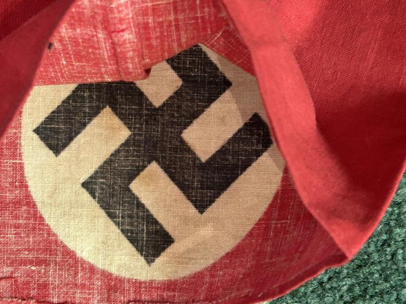 This is an original, ‘no frills’ printed Third Reich Party armband. This is a mass produced piece printed type that would have been given away or given out at mass rallies. A very basic but original armband, not to be confused with the high quality, 3 piece wool types.