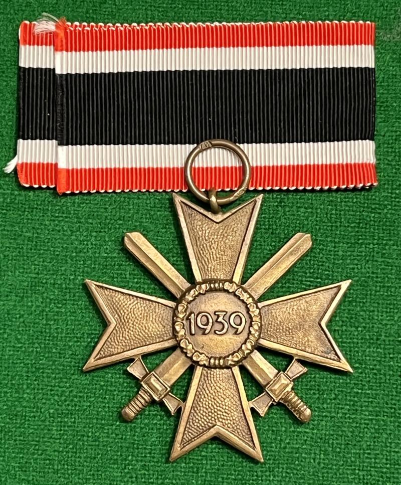 A good, tombac KVKII with swords. Ring marked with a clear, but partial striking that looks to be ' 87 ' indicating manufacture by Roman Palme, Wienerstrasse 27, Gablonz. Good, probably unused condition.