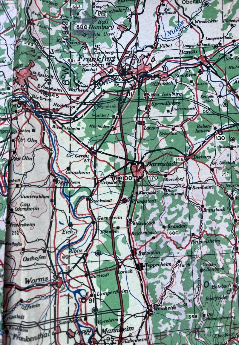 Code AF, Foldex, Europe (Air). 1944, produced by Foldex for the Directorate of Military Survey at the War Office. Large, card bound series of interlinked maps which allowed a navigator to plot a route from Paris in the West to Regensburg in the East. The surface of the maps were varnished so that chinagraph pencil could be used directly to the surface and subsequently erased with an ordinary rubber. Good, used condition.