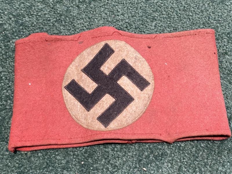 A QUITE FADED ORIGINAL NSDAP/PARTY ARMBAND IN WOOL.