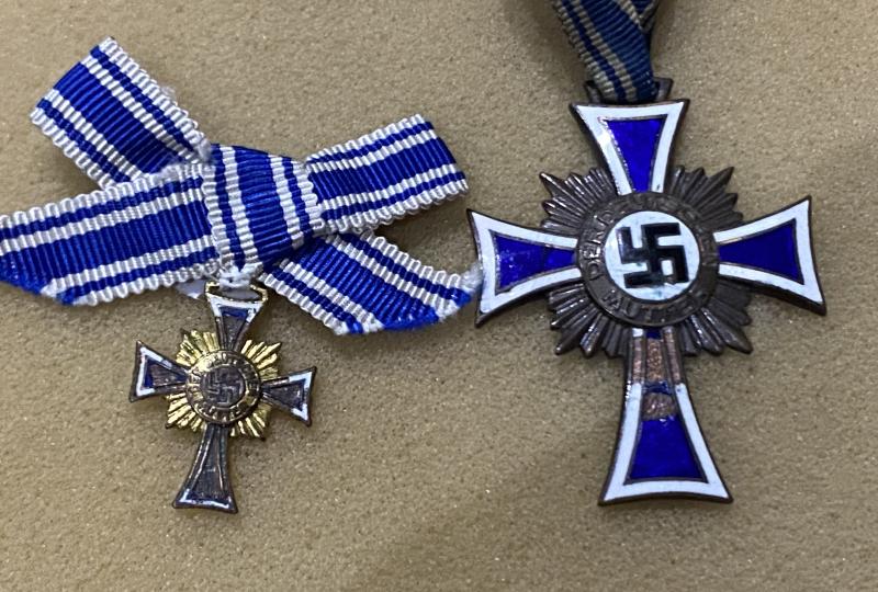 THIRD REICH MOTHERS CROSS WITH MINIATURE- DAMAGED.