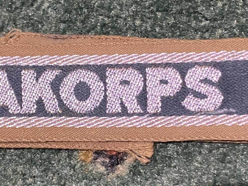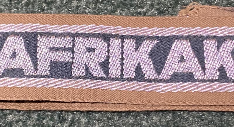 An unissued full length cuff title worn on the right sleeve of the tunic. Multi coloured tan/green with bullion lettering. Mint condition.