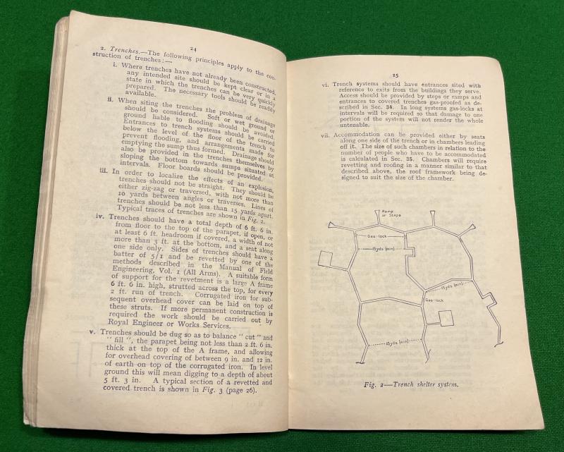 1939 ' Pamphlet No.3 Passive Air Defence - Protection against Gas and Air Raids '. 125pgs covering all aspects of ARP, both civilian and military with plans for shelters, PAD schemes, equipment even signage. Good, well used condition.