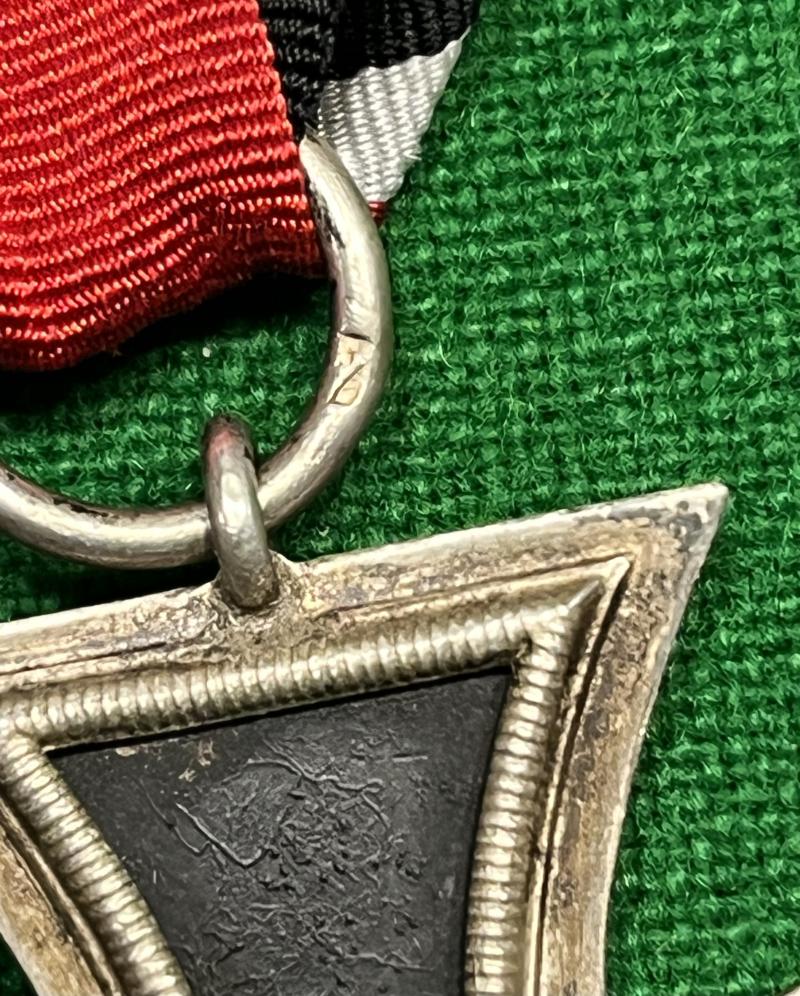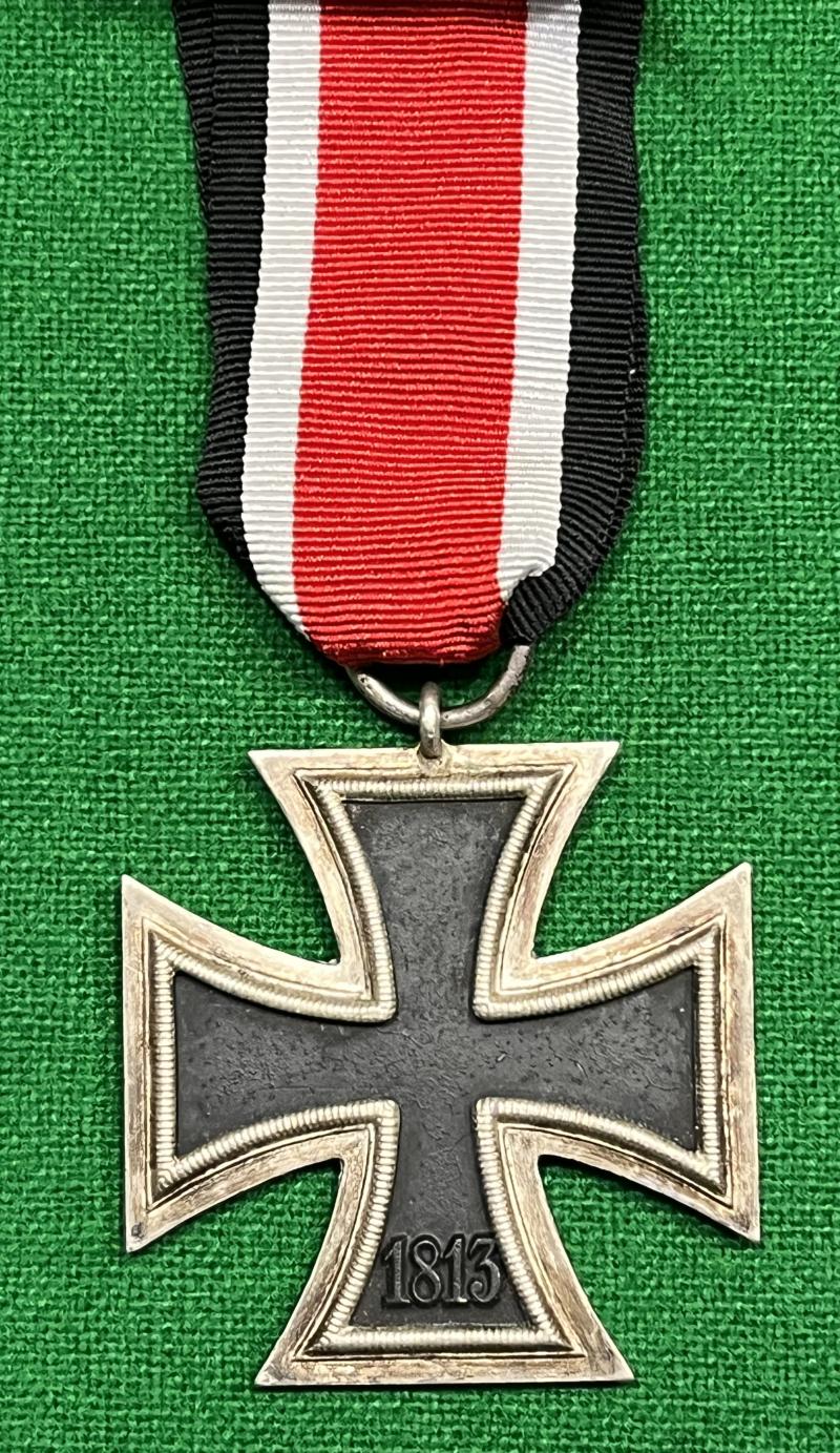 Iron Cross Second Class - three piece construction with magnetic iron core ringmarked ' 7 ' indicating manufacture by Paul Meybauer, Berlin. Patinated frame and core. Harder to find ring mark.