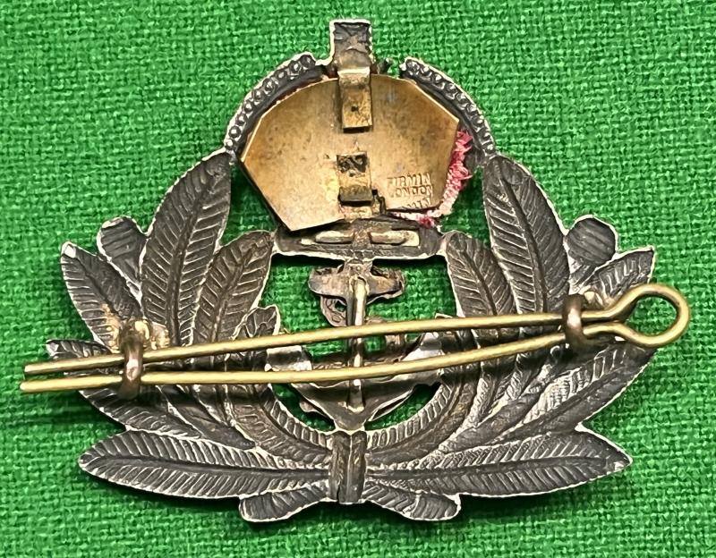 WW2 Royal Navy officer's economy cap badge.Multi-piece construction with red velvet behind crown, enamelled jewels and two original loops to the reverse. Manufacturer marked ' Firmin London '.
