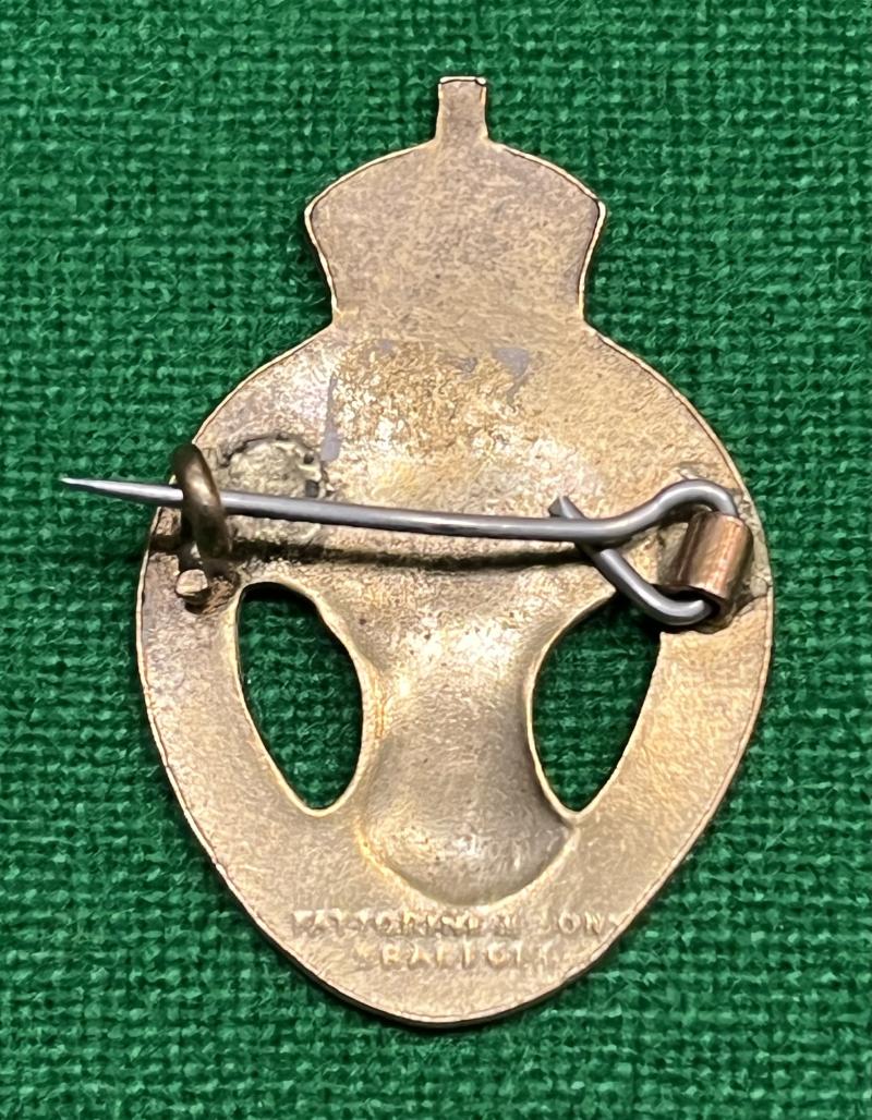 WW1 gilt brass Board of Agriculture Land Workers badge. Featuring a crowned oval title, wheatsheaf to voided centre, the reverse impressed with maker's details ' Fattorini & Sons Bradford '. Good, used condition.