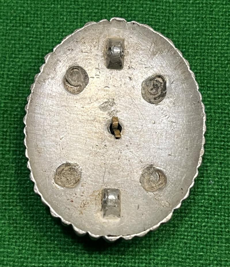 Alloy and gilt, multi-piece construction WW2 Japanese Company Grade Officer's badge. Awarded to those ranked from Second Lieutenant to Captain. This souvenired example is unfortunately missing it's brass hinged retaining catch but otherwise in good condition.