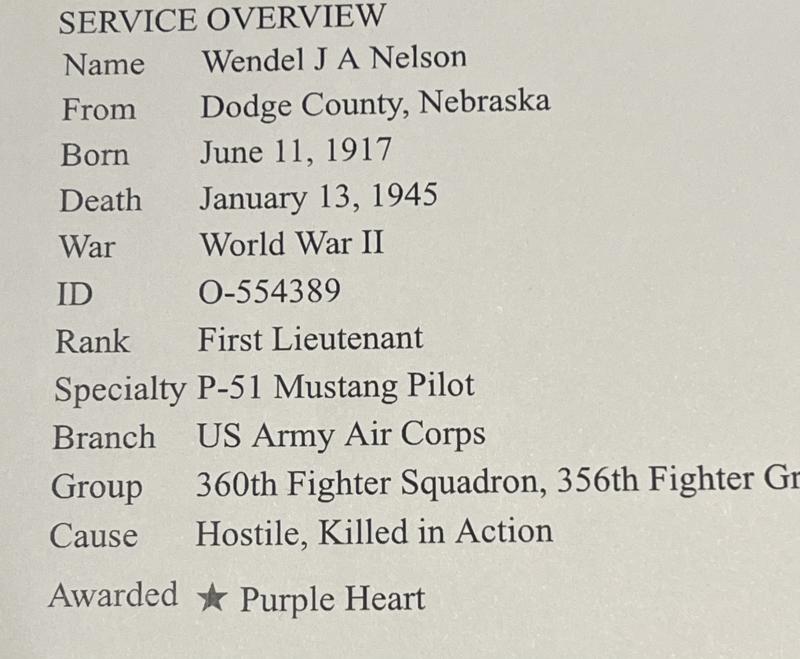 Dog Tag to 0-554389 1st Lt.Wendel J.A.Nelson of the 359th FS, 356th Fighter Group. Having taken off from Martlesham Heath on 13/01/1945, Nelson was killed when his P-51D Mustang dived into the ground from altitude. It was believed that he suffered from anoxia causing him to lose consciousness. The dog tag was recovered from the crash site at Bridge Farm, Grundisburgh sometime in the 1970s. In good condition accompanied by some research.
