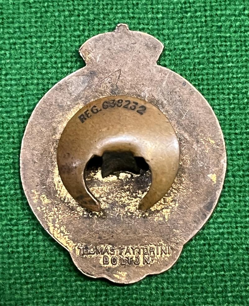 A scarce original WW1 period ' Leyland Motors Ltd ' On His Majesty's Service lapel badge the reverse impressed with maker's details ' Thomas Fattorini Bolton '. Good condition, complete with original buttonhole fitting, gilt finish with undamaged enamel, although with some light abrasions.