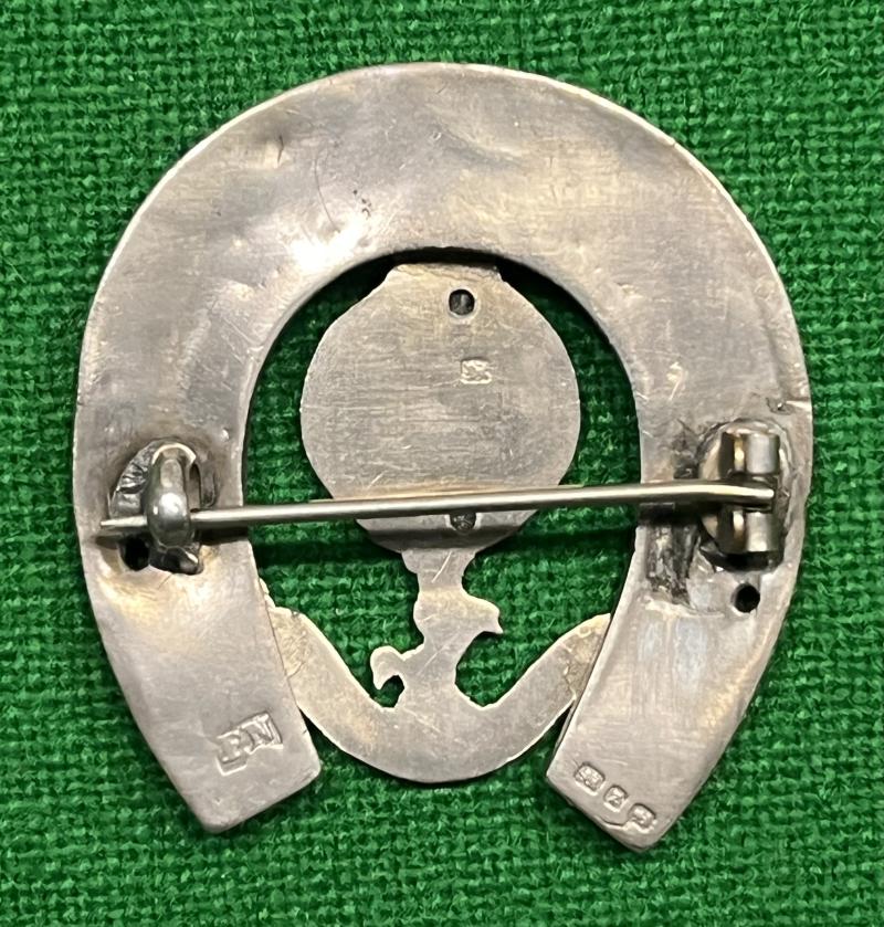 An 1899 hallmarked silver Royal Fusiliers sweetheart brooch.large hollow, two piece silver example, the reverse impressed with Birmingham silver hallmarks for 1899 and maker's details "F.N" (F. Narborough Birmingham). Good, clean condition.