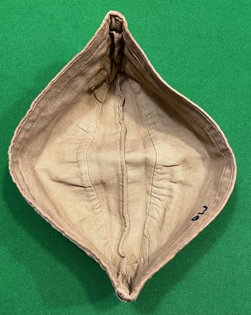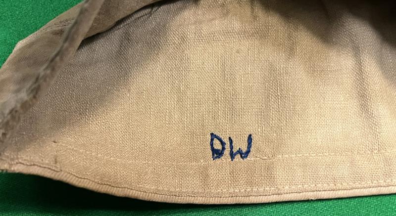 Original WW2 German Luftwaffe tropical pattern O/Rs overseas/side cap. Manufactured from tropical cloth with the original machine embroidered triangular Luftwaffe cap eagle and separate cloth roundel cockade. Exterior stained and faded with clear evidence of the original colour revealed behind the side curtains. Has been stored folded showing a cleaner side. Various snags and stains to the exterior with a clean interior with initials embroidered into the coarser cloth lining. Original souvenired example.