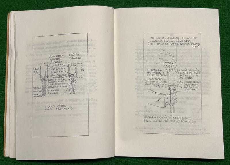 1965, dual language manual produced by the Irish ( Eire ) Defence Forces for the use of the venerable Mills 36 Grenade. 141pgs covering all aspects of the grenade from workings, deployment, cup discharger to destruction of blinds. Illustrated through out with diagrams. Unusual and in good, used condition with some light marking.