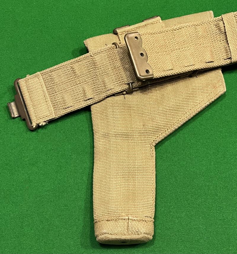 1940 dated 1919 Patt. belt by the Mills Equipment Company accompanied with the large '37 Patt holster that would accommodate the Colt 1911 .45 Auto. Holster similarly 1940 dated and manufacturer marked indicating manufacture by the Mills Equipment Co. Both items in clean condition with a slight nibble to the reverse of the belt.