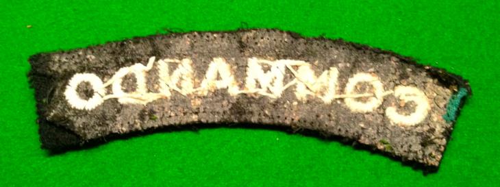 Embroidered Commando shoulder title.This type of shoulder title is often associated with No.2 Commando. In excellent used condition with clear evidence of having been removed from a uniform.