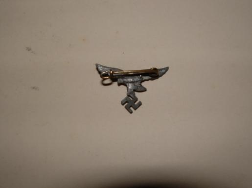 Small Luftwaffe eagle with pin back for womens or civilan wear. Great detail in grey zinc. Ideal display eagle with other Luftwaffe items.