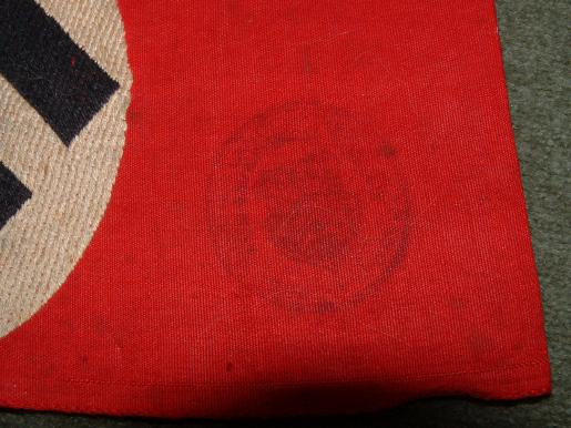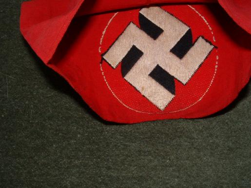 Another red linen armband with 'bevo' construction white circle and swastika. Again a little grubby from age, but fine. This has a state or town stamping to the front, but i CAN'T MAKE OUT WHERE IT IS FROM.