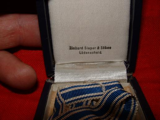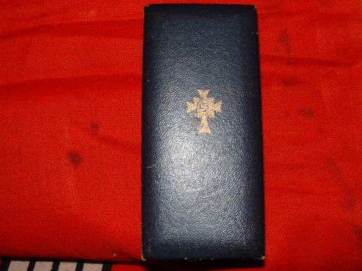 Similar to the other cross just listed. This has a mint gold cross with full length neck ribbon. Box has a different maker on the inside lid. Exterior of box not quite so good with some scuffs etc to one edge.