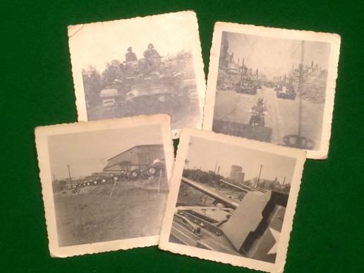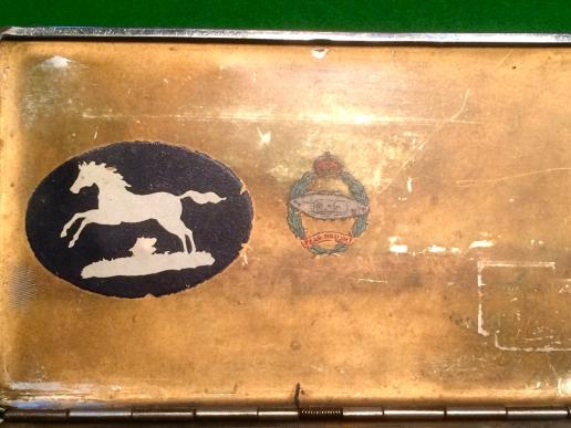 White metal cigarette case with a Royal Tank Regt. transfer to interior lid alongside a well executed Northants Yeomanry badge. Comes with 8 x small photographs showing various vehicles and tanks ( inc. Archer atvs ) , found inside case.