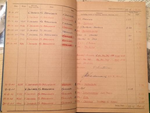 Paperwork grouping to 196127 F/O.Philip Gordon Boatman a Flight Engineer with 460 Sqn. Boatman started flying with 1656 HCU from Lindholme, No.1 L.F.S. at Hemswell before joining 460 Sqn. at Binbrook in October 1944. He then went on to fly 35 operations between October 44 and the end of the War including Dresden, Cologne, Dusseldorf ( ' Good prang 21 lost ' ), Essen ( 1000 A/c ) and Nuremburg. His logbook entries end in November 1945 with various flights to the Middle East and then India.
