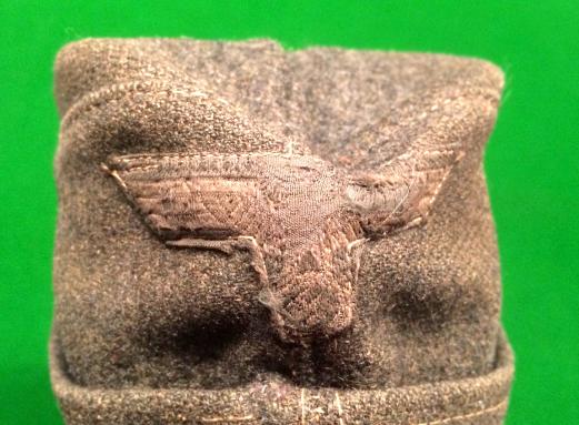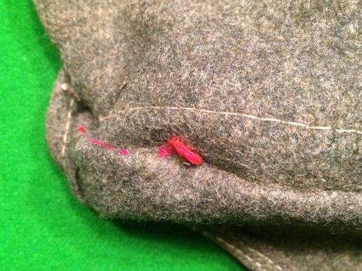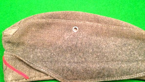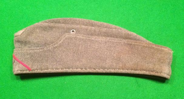 A particularly pleasing example of the M1934 Feldmutze with Artillery branch of service piping. A well used cap demonstrating the classic ' Bootsform ' , the nap of the cloth is displayed in all exposed areas of the cap whilst the original wool surface is shown in all hidden areas behind the skirts and in the fold of the top. Original cotton red ( Artillery ) soutache oversewn by seams indicating application during construction, machine woven cockade and national emblem applied by machine, heavy wear to eagle. Both zinc ventilation grommets present with accentuating black stitching added to the bottom seams. It would appear that stitching was applied to the interior lining to maintain the shape of the crown but this has now been removed. Graduated fading of lining indicative of wear with no visible markings. Good, clean condition demonstrating lots of character.