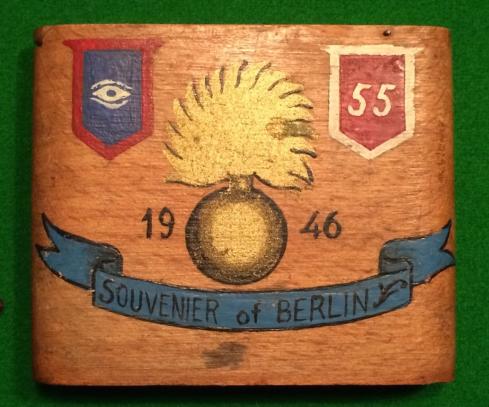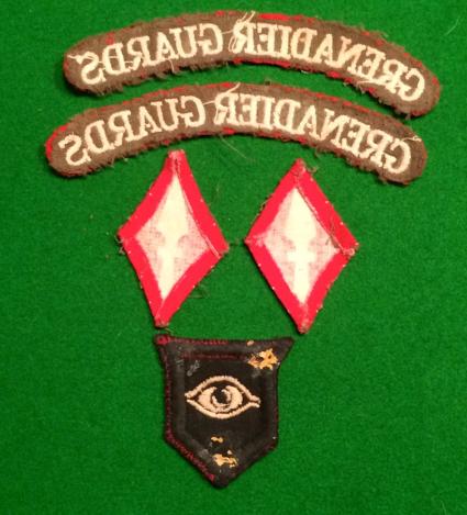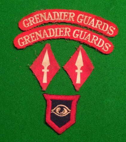 A small grouping of cloth insignia and cigarette case from a veteran of the 1st Battalion Grenadier Guards. Comprises a painted cigarette case with Guards formation signs, 2 x embroidered Grenadier Guards shoulder titles, 1 x Guards Armoured and 2 x 1 Corps formation signs. All typical of a veteran who fought through the campaign in Europe to become the occupying forces in the Rhine Province.