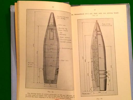 1940ed.30pgs ' Handbook of Enemy Ammunition - Pamphlet No.1 German Shells Fuzes and Bombs '. A superb and very scarce manual, detailing the final available information on German ammunition . Profusely illustrated with sketches, b/w photographs and diagrams . Good, clean condition with external, issue board covers.