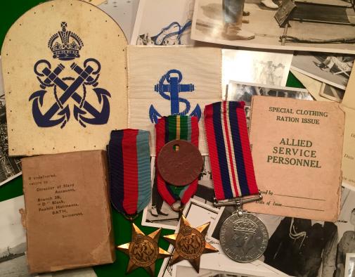A medal, insignia , ephemera and photographic grouping to D/MX 726397 P/O. Maurice D Edwards who was serving on board the aircraft carrier HMS Glory.