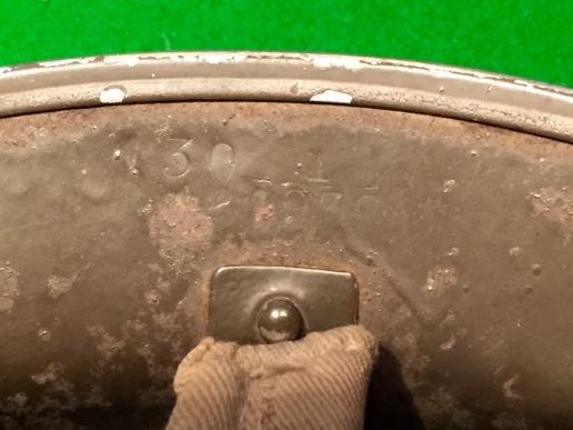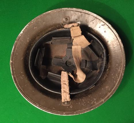 1939 dated MkII helmet with a size 7 MkII liner by Briggs Motor Bodies  featuring a 5th Infantry Division symbol to one side. Khaki textured exterior finish now worn smooth with faded divisional symbol, a white Y on a red square, to one side. Good, overall condition.