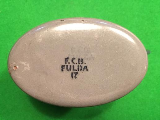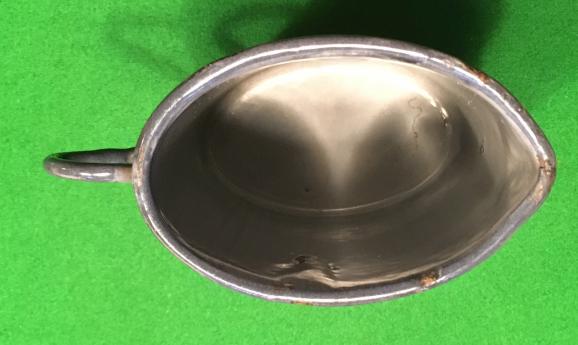 WW1 German enamelled tin,lipped cup/jug. Manufacturer marked and dated to the bottom 'F.C.B. FULDA 17. In excellent, clean condition with very minor chipping to the enamel.