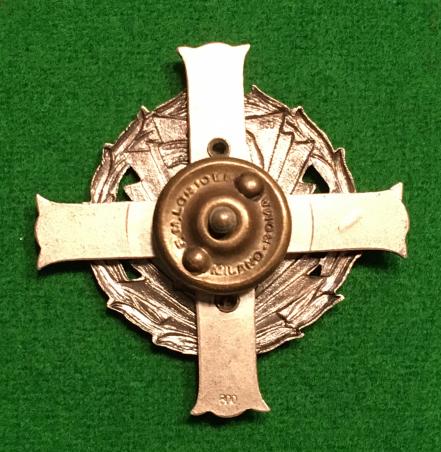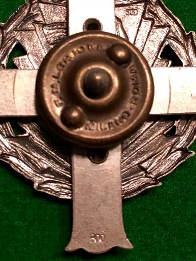 Two piece construction, silver Monte Cassino Cross with a superimposed wreath with the 2 Corps symbol, a mermaid with an artillery shell over an 8th Army shield. 45mm x 45mm approx by the maker Lorioli Fratelli, Milano & Roma. 800 silver marking to reverse of cross, slight rubbing of highlights to figure and wreath. Good example.