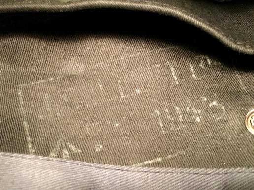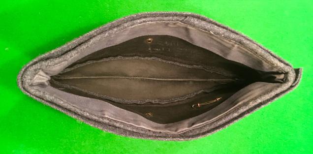 1943 dated wool, RAF O/R's sidecar with brass RAF cap badge. Size 7 1/4 and clearly dated and manufacturer marked ' J.Collett Ltd. ' with a light inspection mark. Good, used condition with signs of light usage and a couple of very minor moth grazes.