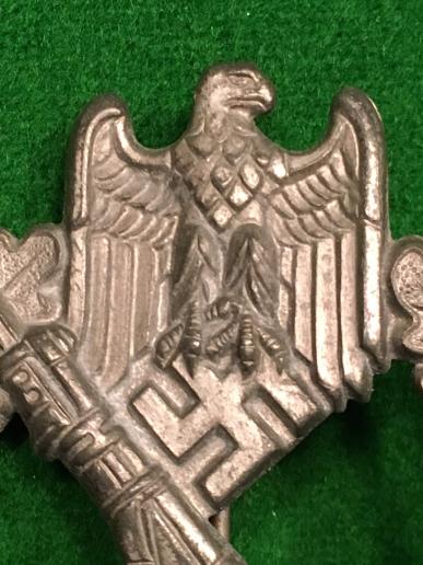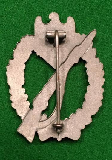 Original WW2 Wehrmacht Infantry Assault badge. Unmarked, semi-hollow silvered zinc construction with crimped steel catch and ' C ' form pin. Crisp detail with approx 30% of the original bright finish remaining to obverse . Good, original example.